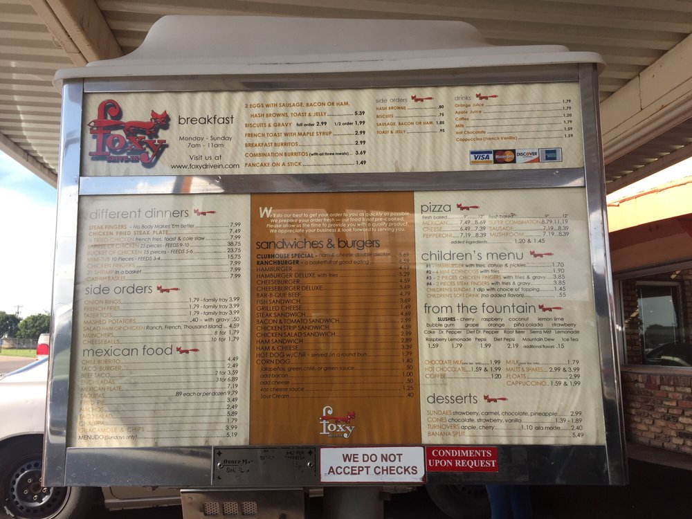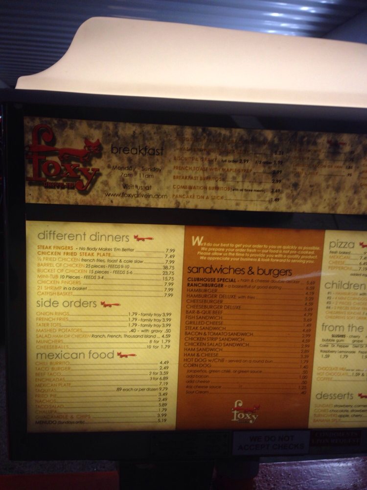 Foxy Drive-In Menu